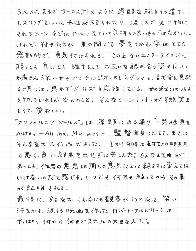 「カリフォルニア・ドールズ」 監督:ロバート・アルドリッチ 1981年アメリカ